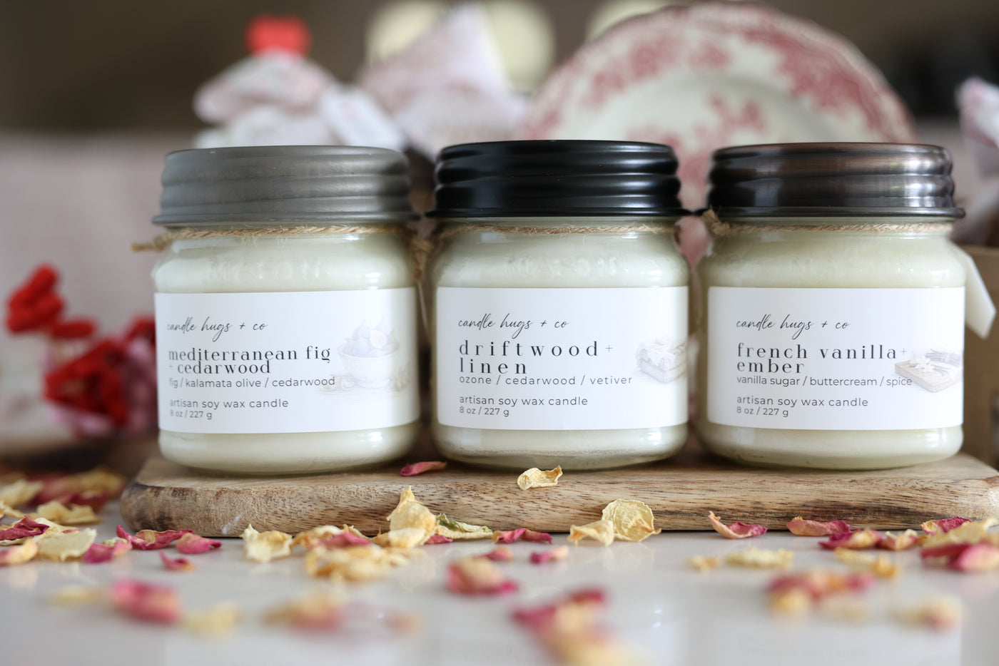 We handcraft artisan, eco-friendly candles with natural soy wax from USA-grown soybeans and blends of exquisite non-toxic fragrance oils. Our products are paraben-free, phthalate-free and vegan. We strive to reduce consumption, reuse the resources we already have, and recycle any waste created by incorporating eco-friendly practices in all aspects of our small business. From our candles’ ingredients to our brand packaging and shipping materials! You can even compost our packaging peanuts!